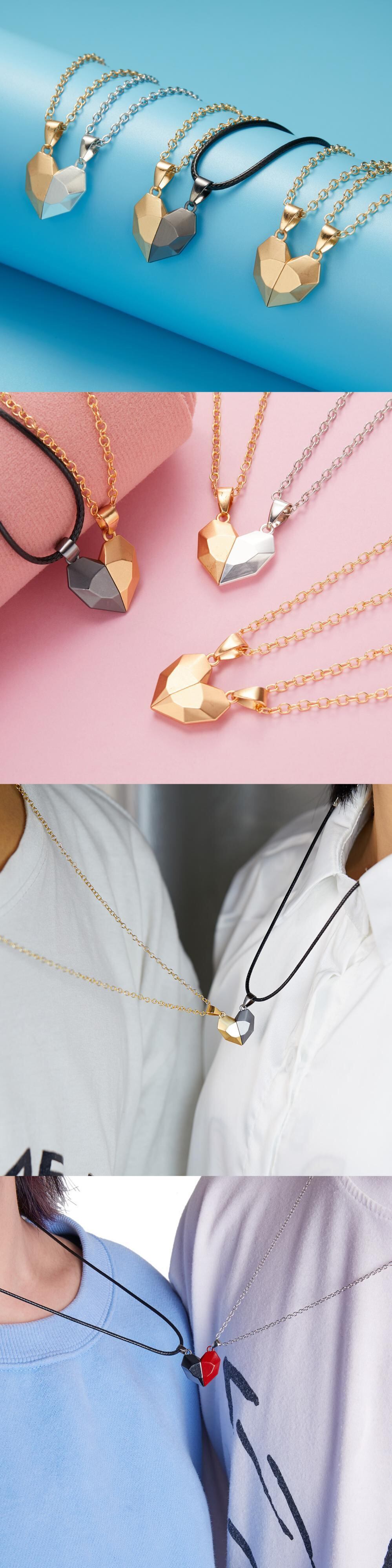 送料無料 2個/セット磁気ネックレス恋人ハートカップルペンダント距離ファセットチャームネックレス女性男性ジュエリーギフト配送 レース アクセサリー AE1777787658483791