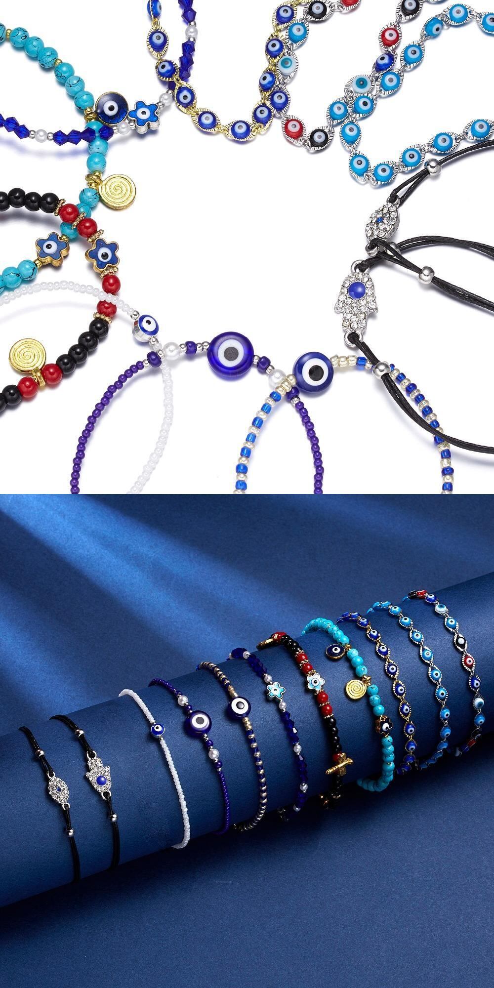 送料無料 2022年トレンディなトルコの邪眼ブレスレット手作りクリスタルビーズラッキーブルーアイチャームブレスレット調節可能なジュエリーパーティーギフト アジャスタブル アクセサリー AE1777726174333683