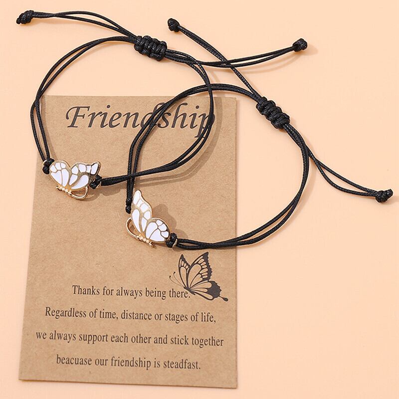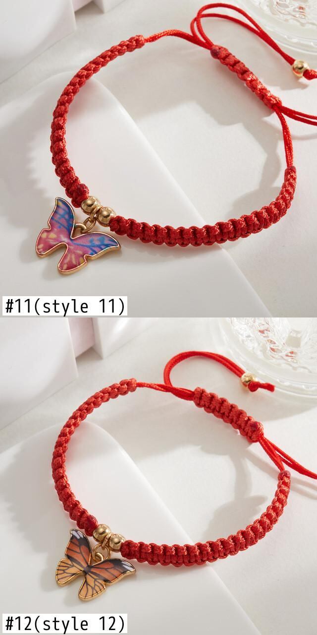 送料無料 手作り編みこみ黒赤ストリングブレスレットカップル友情かわいい蝶調節可能なチャームブレスレット女性のジュエリー レッド ブラック 大人ガーリー スウィート キュート カジュアル アジャスタブル アクセサリー AE1777765730019231