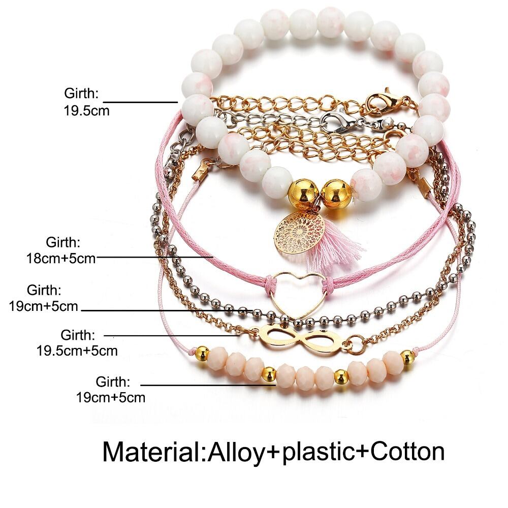 送料無料 ボヘミアンカラフルチャームブレスレットラブハートロータスムーンラウンドナチュラルストーンブレスレットセット女性サマービーチジュエリーギフト 夏物 天然 アクセサリー AE1777753369813250