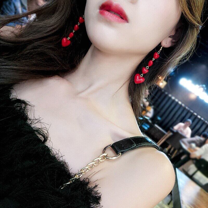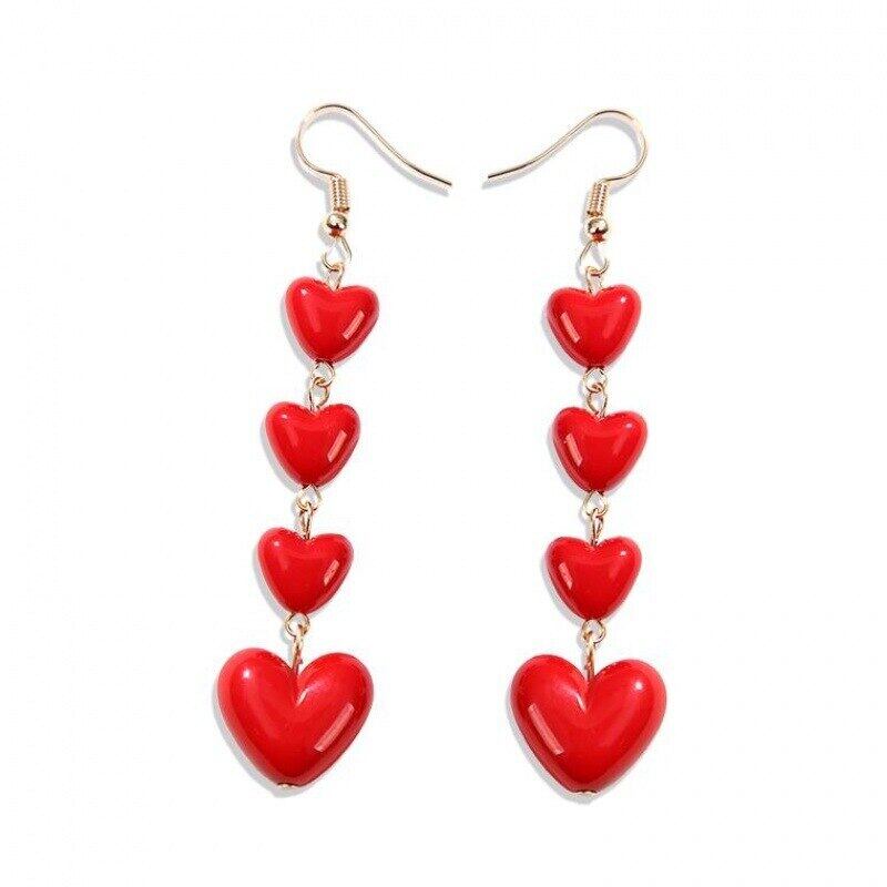 送料無料 リンフーレディースキュートなロマンティックハートピアスレッドラブハートロングテルピアスステートメントウェディングジュエリー イヤリング 大人ガーリー スウィート カジュアル リング 指輪 アクセサリー AE1777751008064469