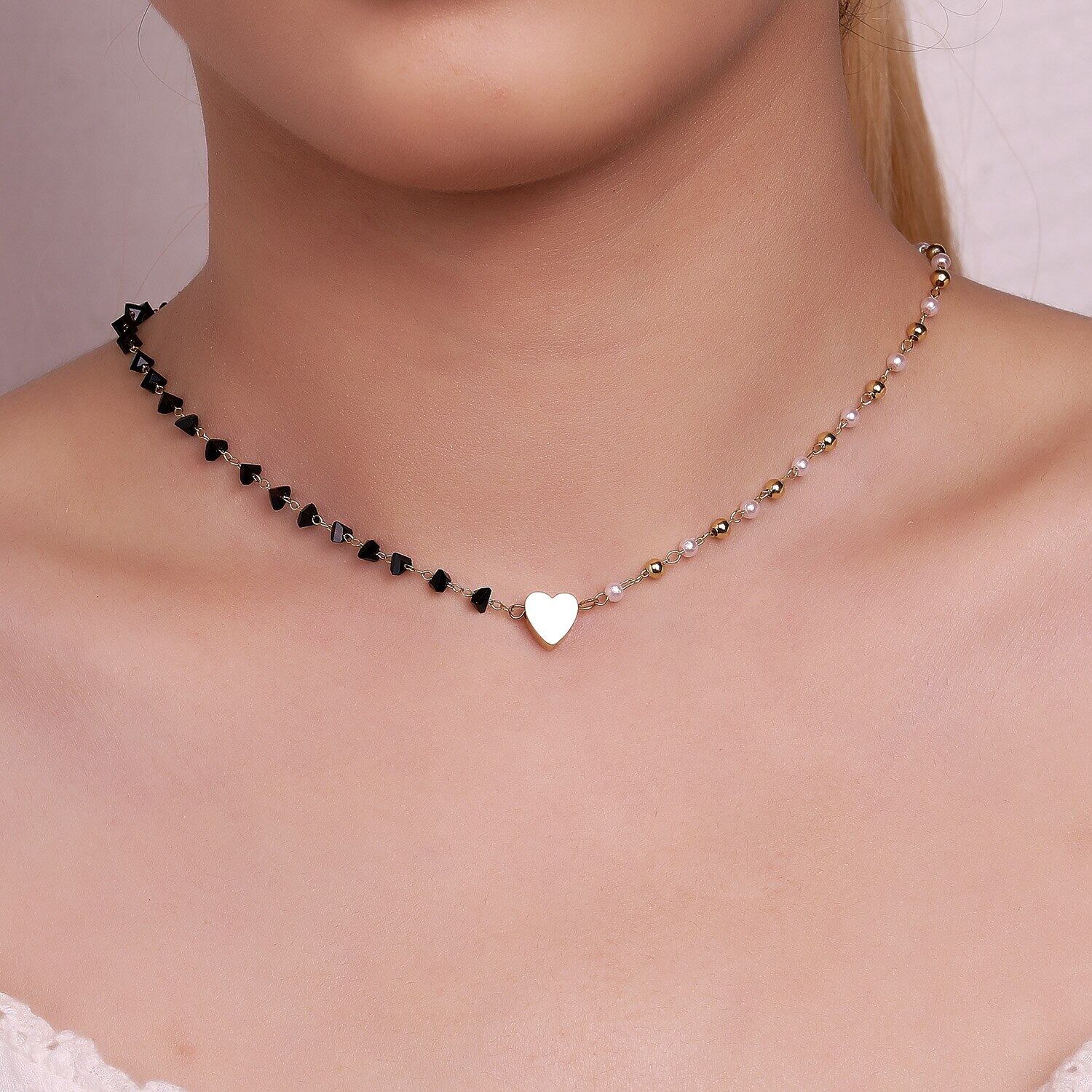 送料無料 ブラッククリスタルGlビーズチェーンチョーカーネックレス女性ガールハートムーンスター鎖骨ネックレスウェディングパーティージュエリー レース アクセサリー AE1777798911266326