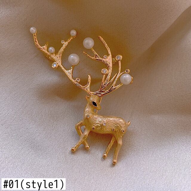 送料無料 クリスマスエルクエナメルブローチ絶妙なパールラインストーンクリスマス鹿金属ピン女性冬のジュエリー2022年ギフト ウィンター 冬物 真珠 アクセサリー AE1777714337677759
