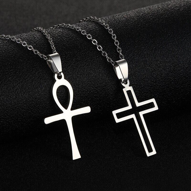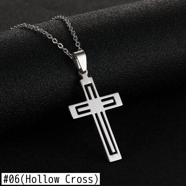 送料無料 クロスペンダントネックレスステンレススチールゴールドシルバーカラーロングチェーンネックレス女性男性宗教ジュエリー2021 レース 銀 アクセサリー AE1777791424261581