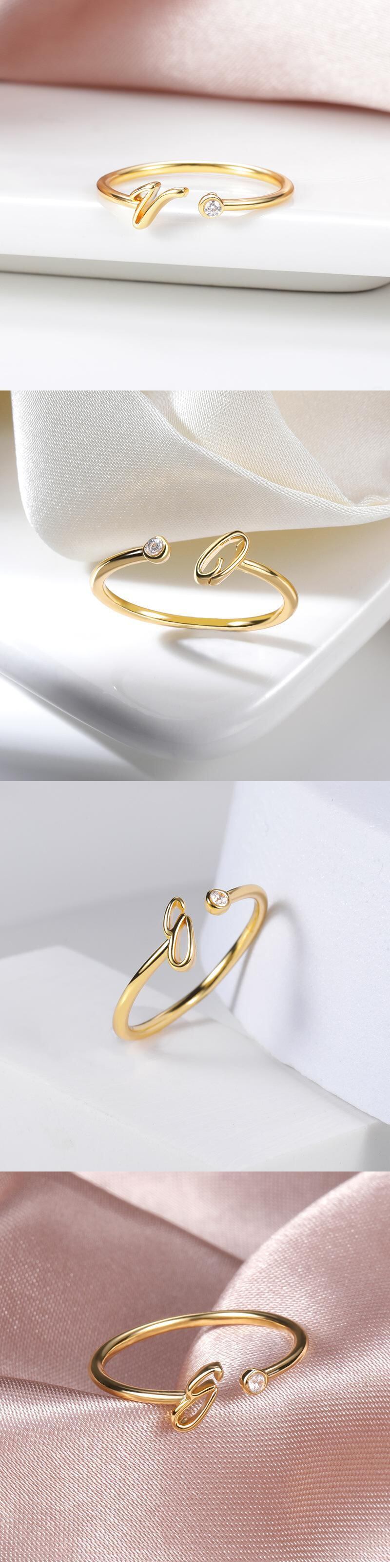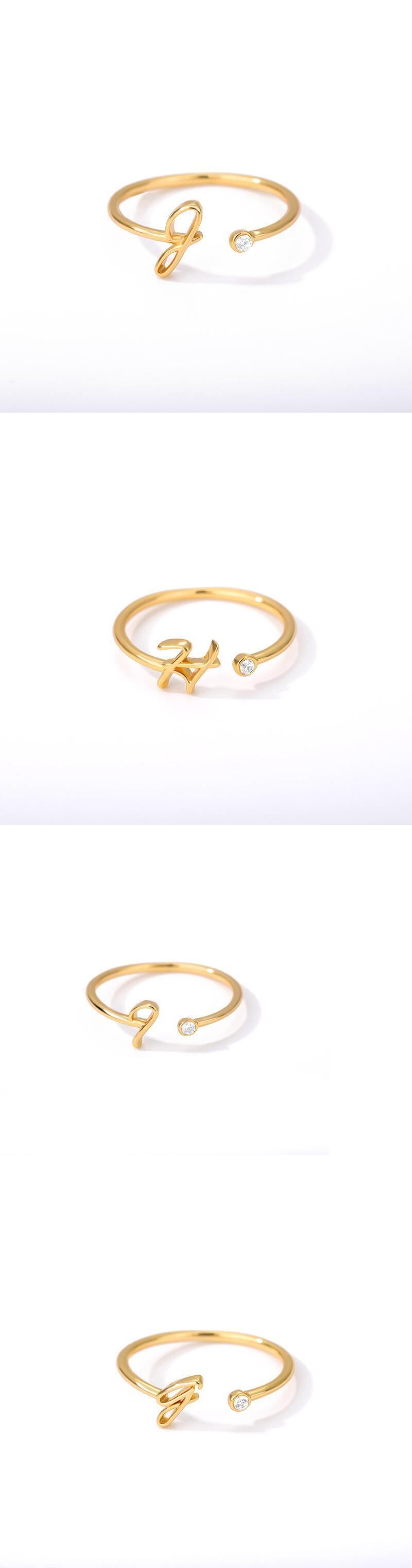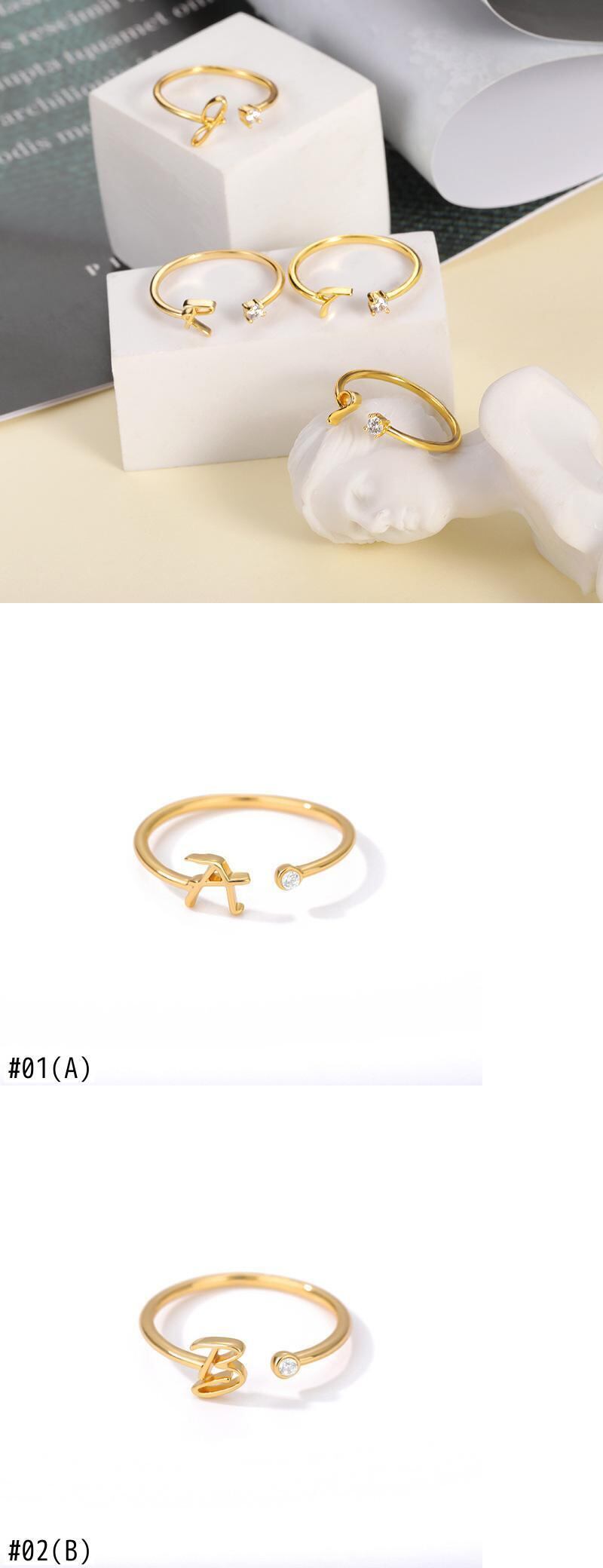 送料無料 ミニマリストタイニーゴールドイニシャルレターリングレディース絶妙なシャイニージルコンA-Zアルファベットオープンリング2022トレンドパーティージュエリーギフト 指輪 アクセサリー AE1777791845892261
