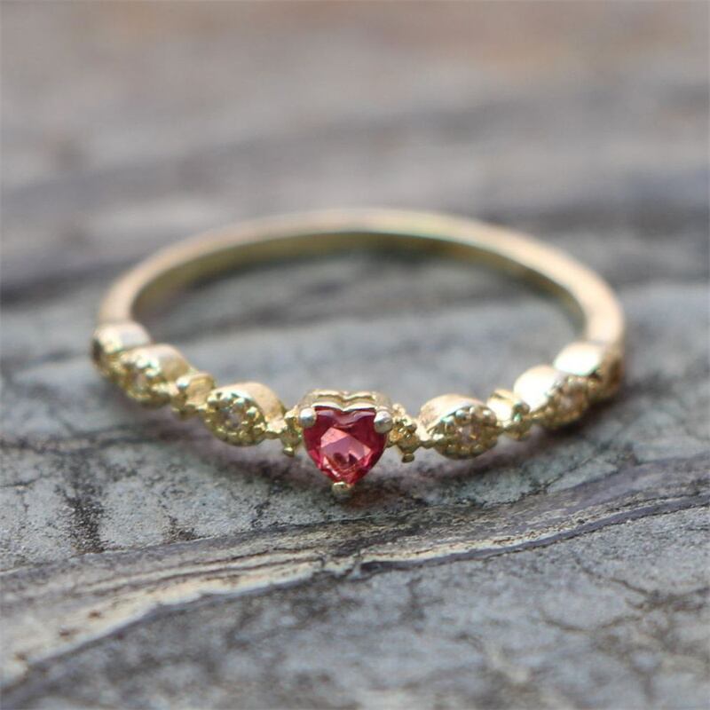 送料無料 ゴールドシルバーカラーハートリング女性象眼細工ジルコンレッドクリスタルウェディングリングブライダルエンゲージメントジュエリーギフト 指輪 銀 アクセサリー AE1777781804328226