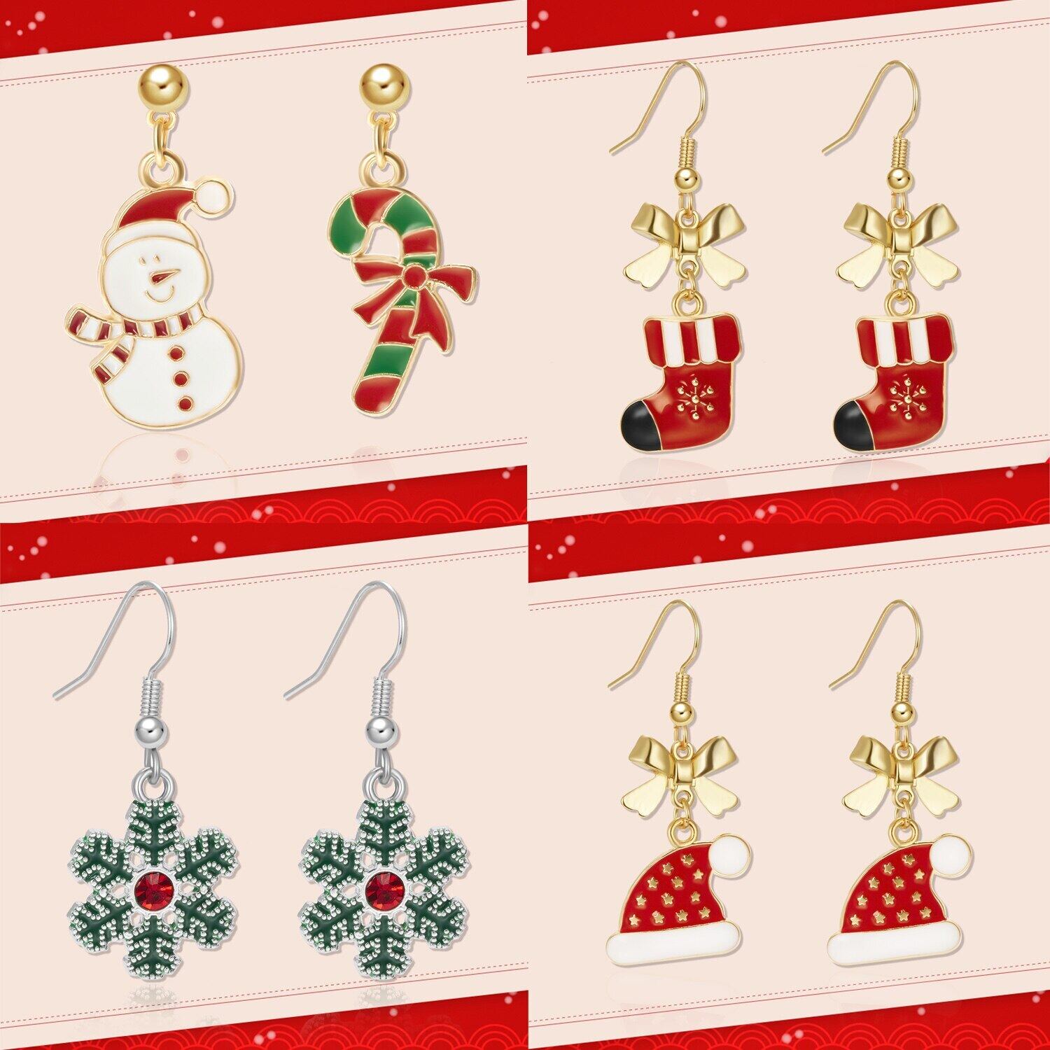 送料無料 トレンディなスノーフレーククリスマスイヤリング女性かわいい雪だるまクリスマス帽子イヤリングジュエリー2022年ギフト 大人ガーリー スウィート キュート カジュアル 指輪 アクセサリー AE1777730467082345