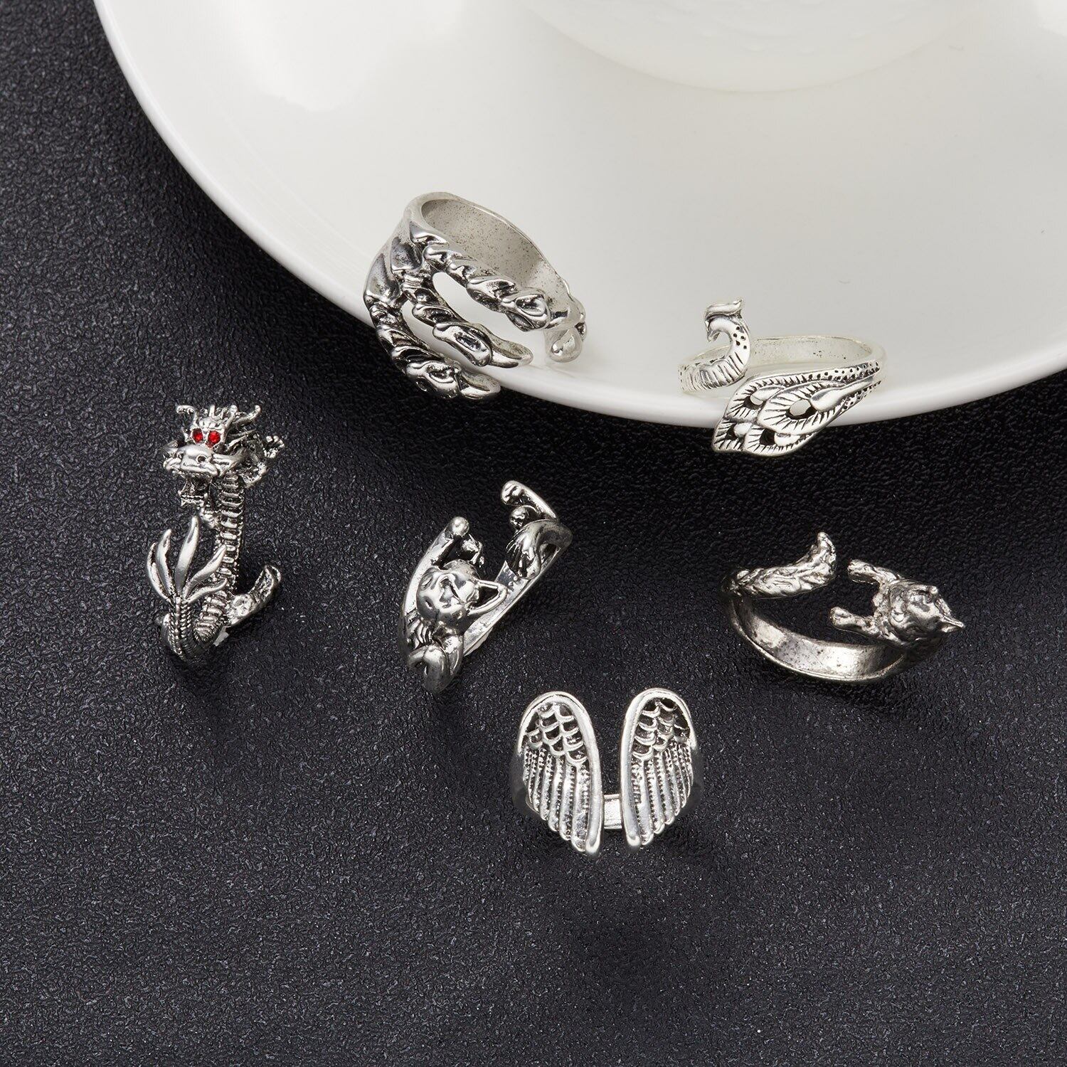 送料無料 ヴィンテージシルバーメッキエンジェルウィングリング女性男性ゴシックパンクスチームパンクキャットドッグフロッグドラゴンオープンリングパーティージュエリー2021ホット 指輪 銀 ビンテージ アクセサリー AE1777751495433334