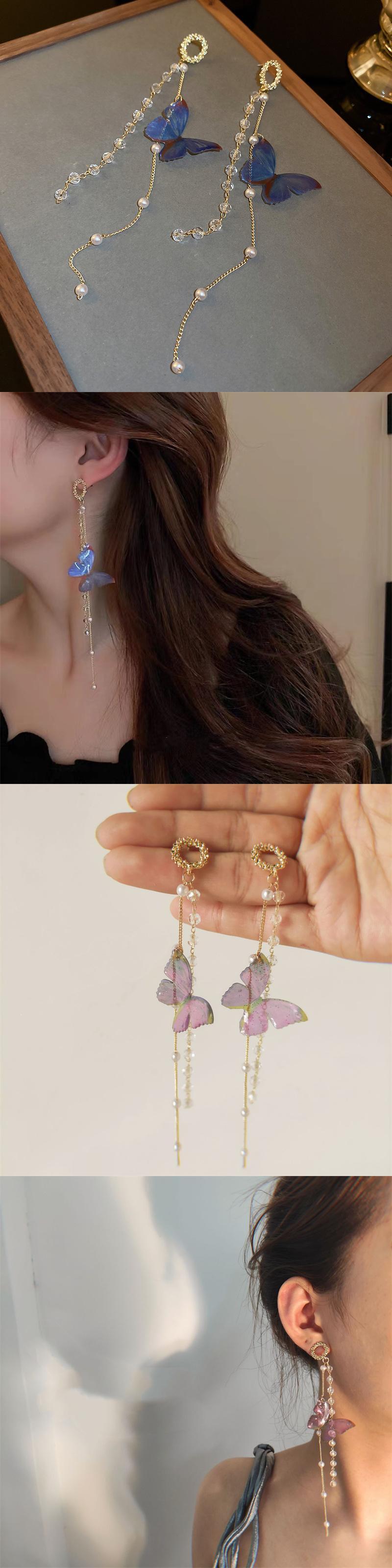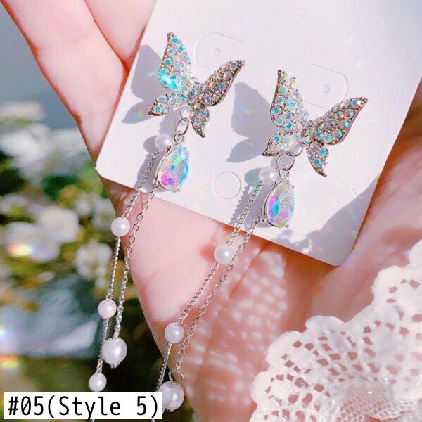 送料無料 テンペラメントロングテルバタフライイヤリングパールクリスタルハンギングレディースイヤリングジュエリーパーティーギフト 真珠 指輪 アクセサリー AE1777786860727526