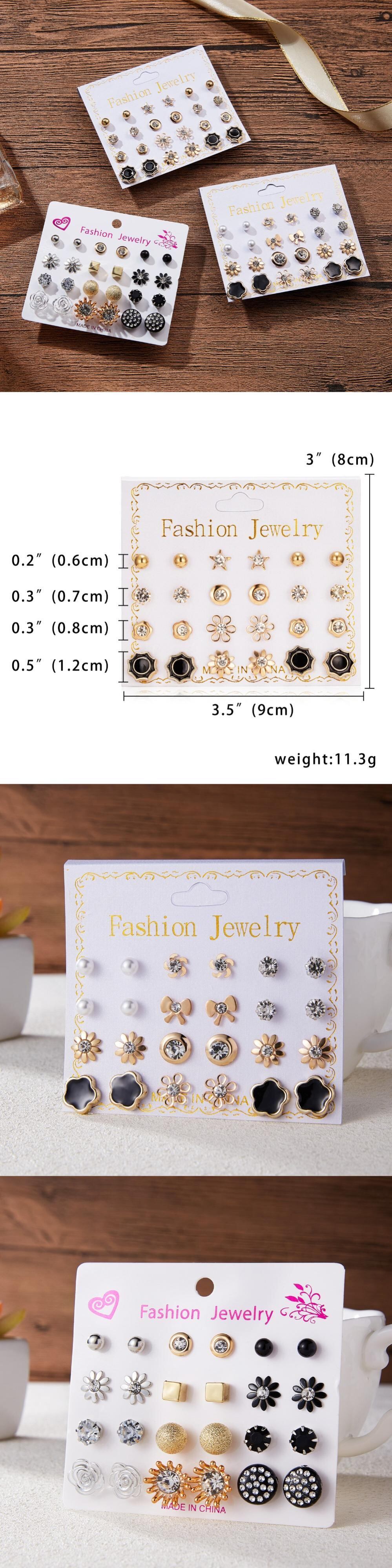 送料無料 ホットレディースイヤリングセット12ペアミックススタイルフラワーラウンド幾何学的メタルスタッドピアス2021トレンドジュエリー 指輪 フラワーデザイン アクセサリー AE1777783318330591