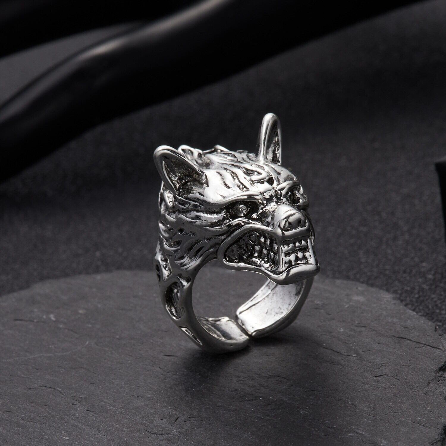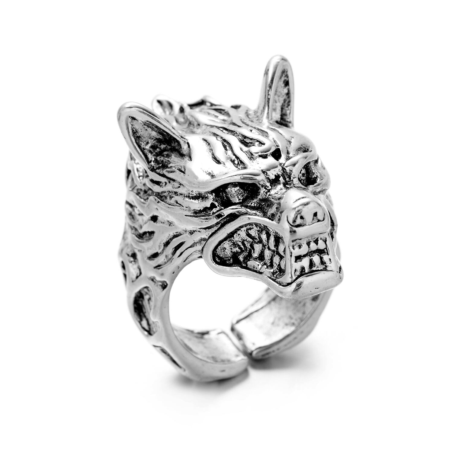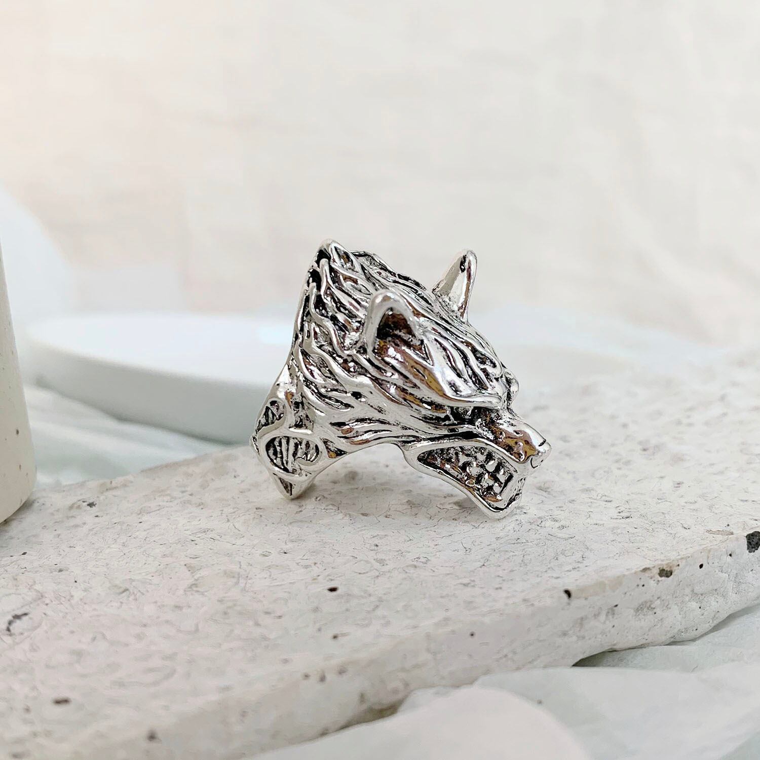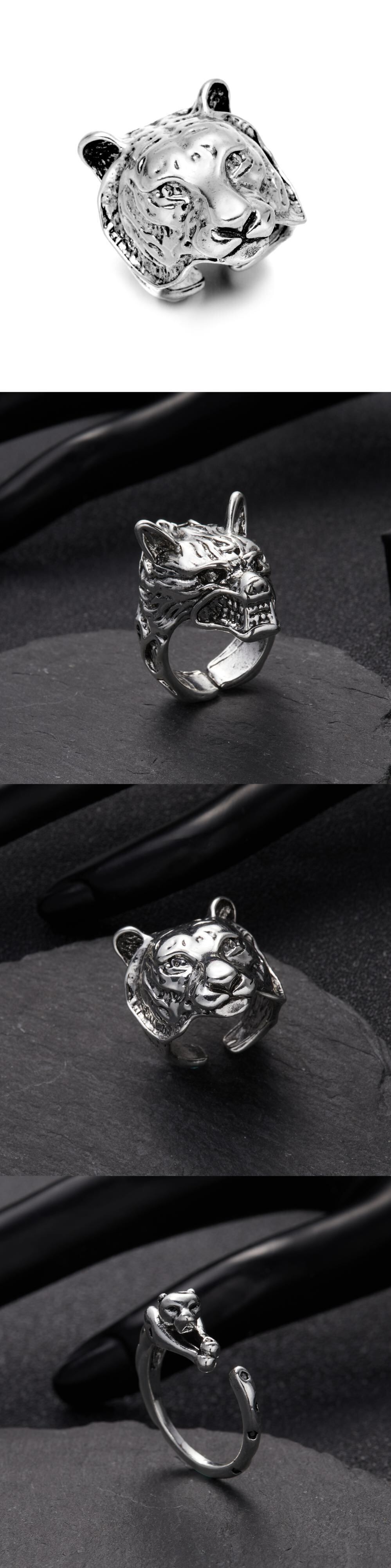 送料無料 2022レトロパンクシルバーカラーウルフチーターリング男性女性誇張されたパーソナリティパーティーヒップホップアジャスタブルオープンリング 指輪 銀 アクセサリー AE1777732243845522