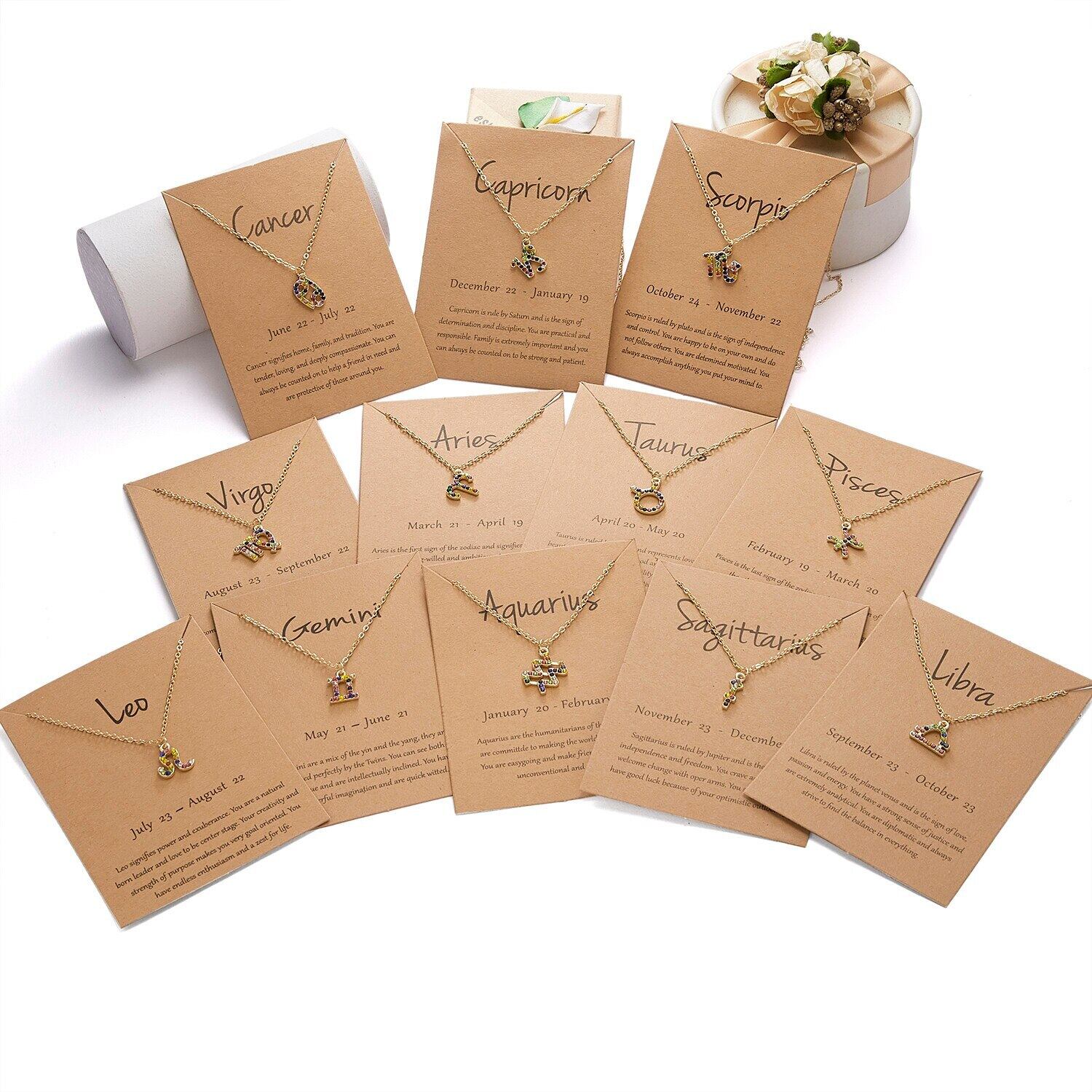 送料無料 段ボール星座12星座ネックレスカラフルなクリスタルチャームゴールドチェーンチョーカー女性の誕生日パーティージュエリーギフト レース アクセサリー AE1777749816399106