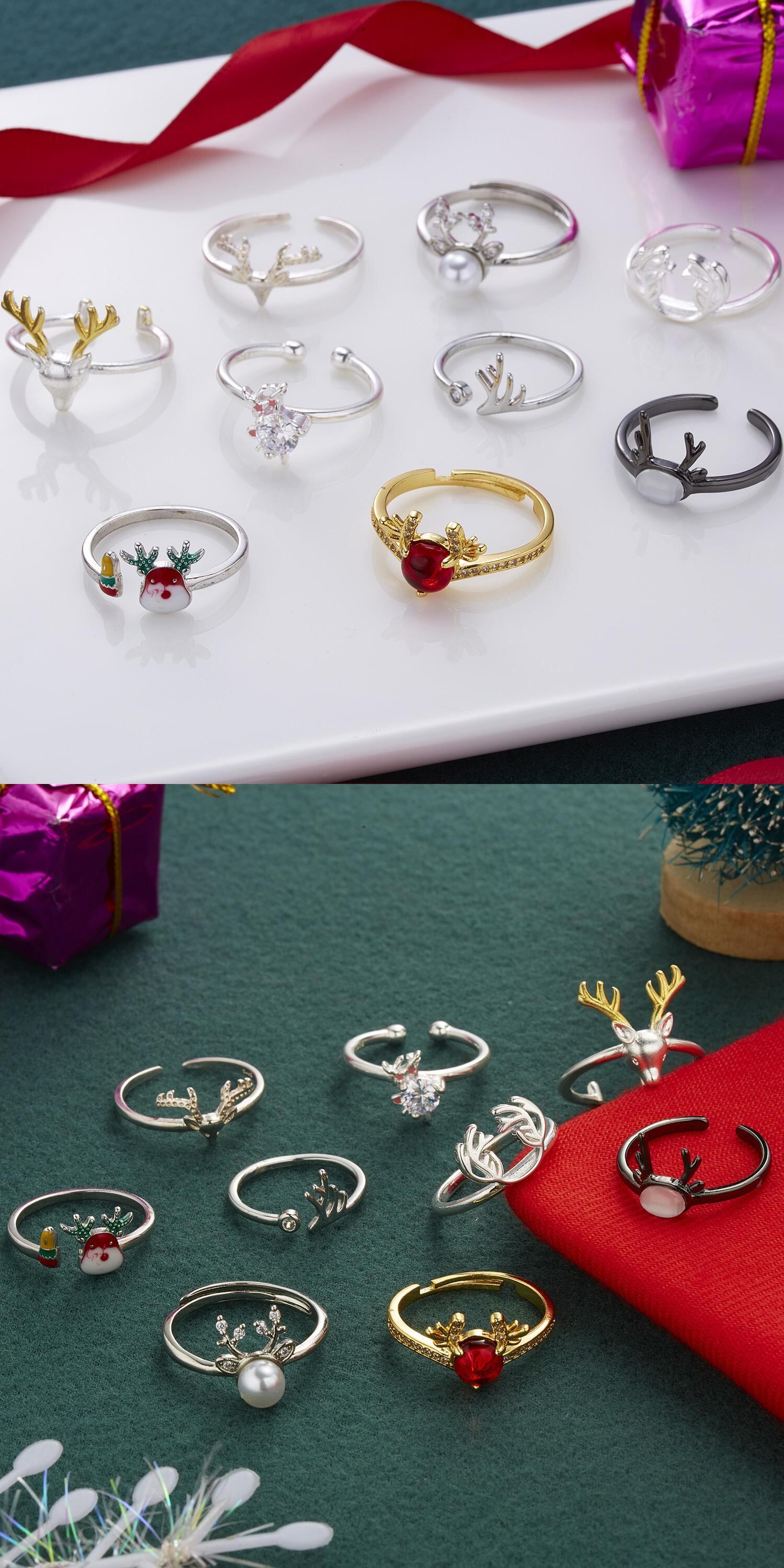 送料無料 2021年の創造的なクリスマスの装飾品スタイリッシュなクリスマスエルククリスタル鹿の指輪女性のジュエリーギフトクリスマスの装飾 リング アクセサリー AE1777750938509770