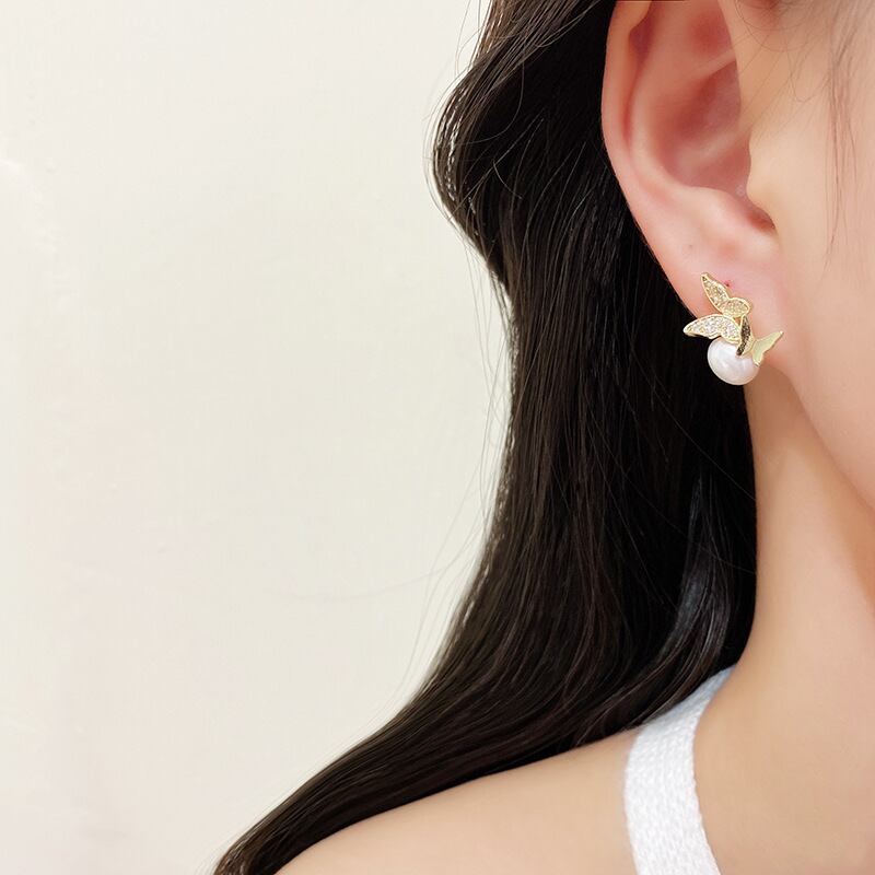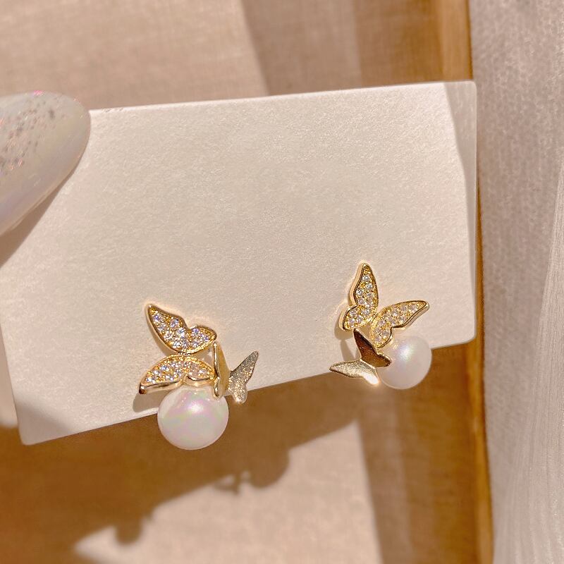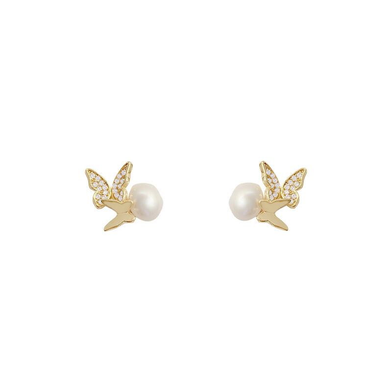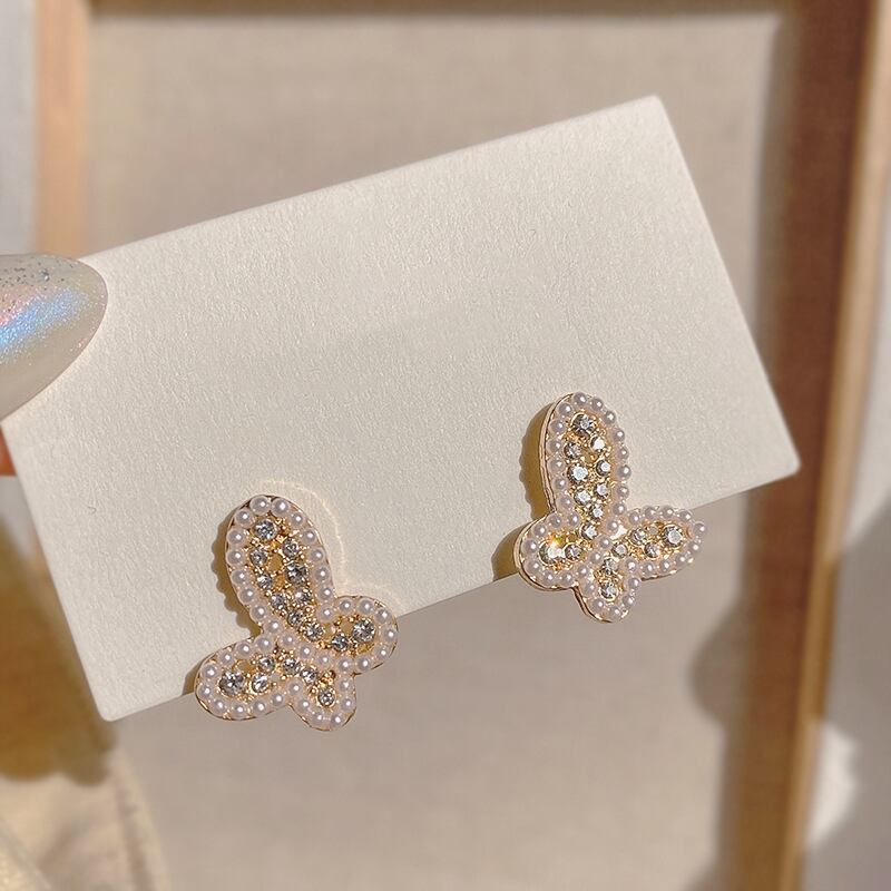 送料無料 クリスタルバタフライメタルパールスタッドピアス女性テンペラメントゴールドカラースモールイヤリングパーティージュエリーギフト 真珠 指輪 アクセサリー AE1777750662933052