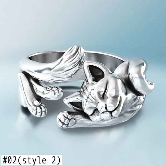 送料無料 ヴィンテージヒッピーシックキャットラビットバニーアニマルリングレディースアーティスティックレトロ誇張オープニングリングシルバーカラーギフト 指輪 銀 ビンテージ アクセサリー AE1777757482599680