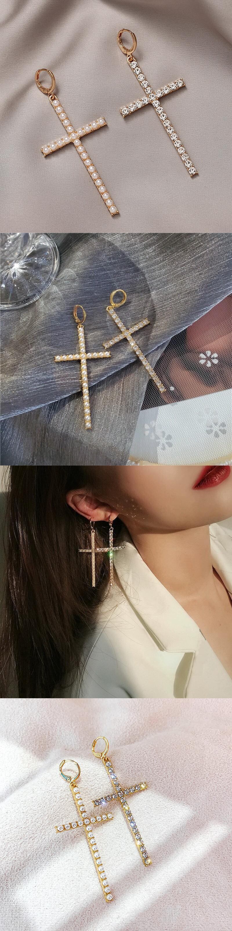 送料無料 ゴールドカラーステートメントイヤリング女性非対称クリスタルピールクロスダングルピアス2021トレンドジュエリーパーティーギフト 指輪 アクセサリー AE1777788475619116