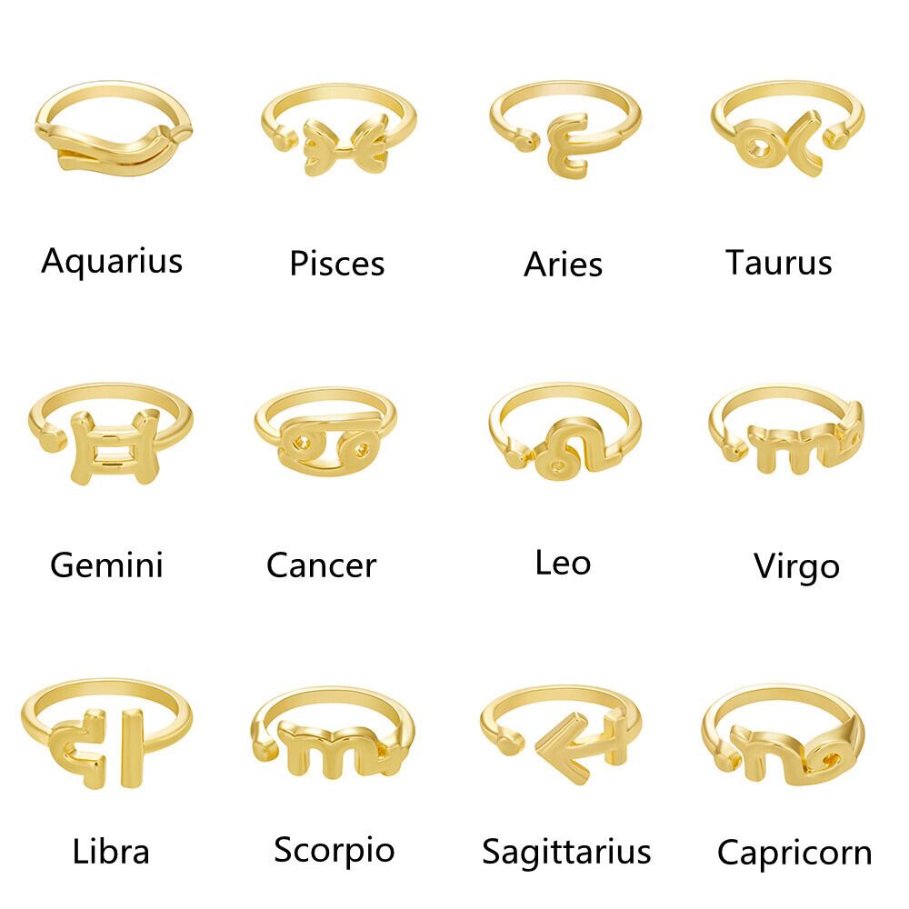 送料無料 小さなシンプルなオープニングリングゴールドスライバーカラー干支サインリング女性12星座リングパーソナリティジュエリーギフト 指輪 アクセサリー AE1777767710177041