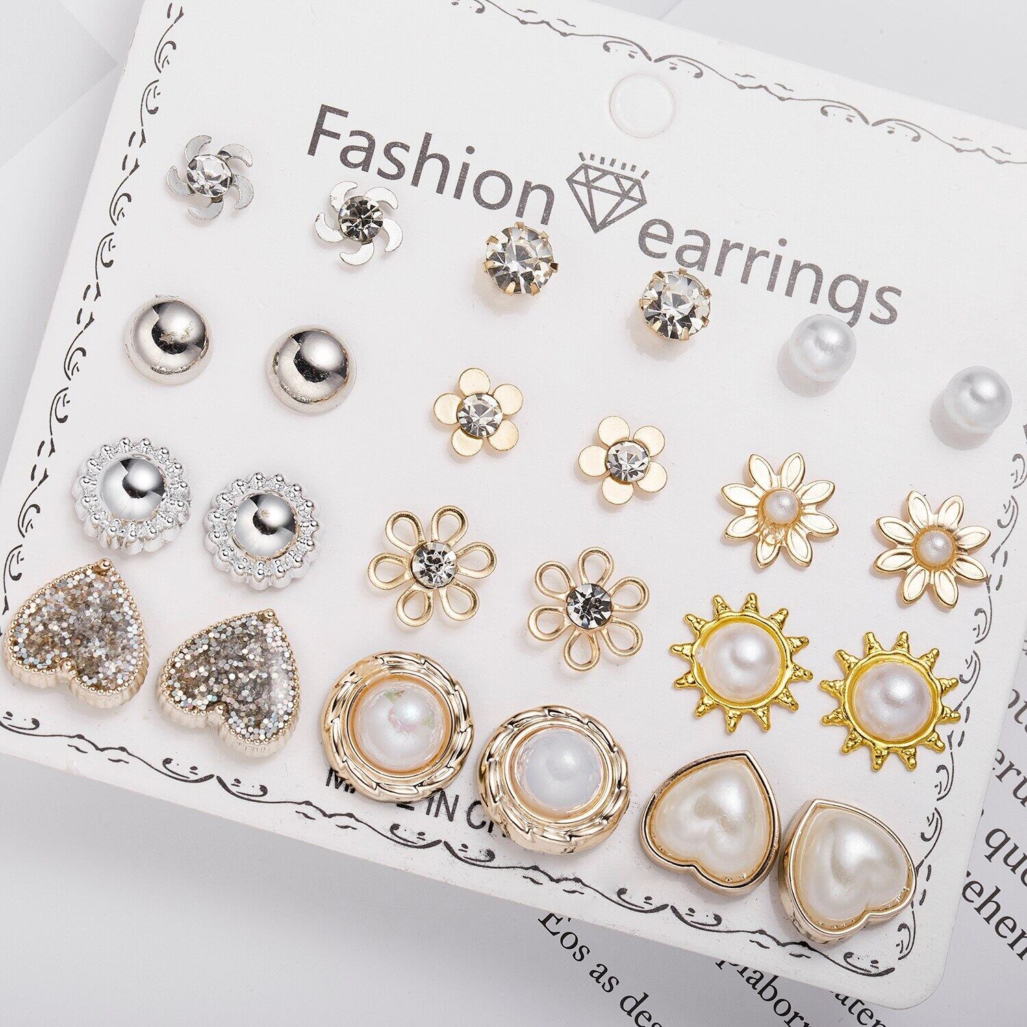 送料無料 トレンディな絶妙な女性のイヤリングセットフラワーラインストーンパールイヤリング女性のジュエリーセットクリスタルハートスタッドピアス 真珠 指輪 フラワーデザイン アクセサリー AE1777742461207368