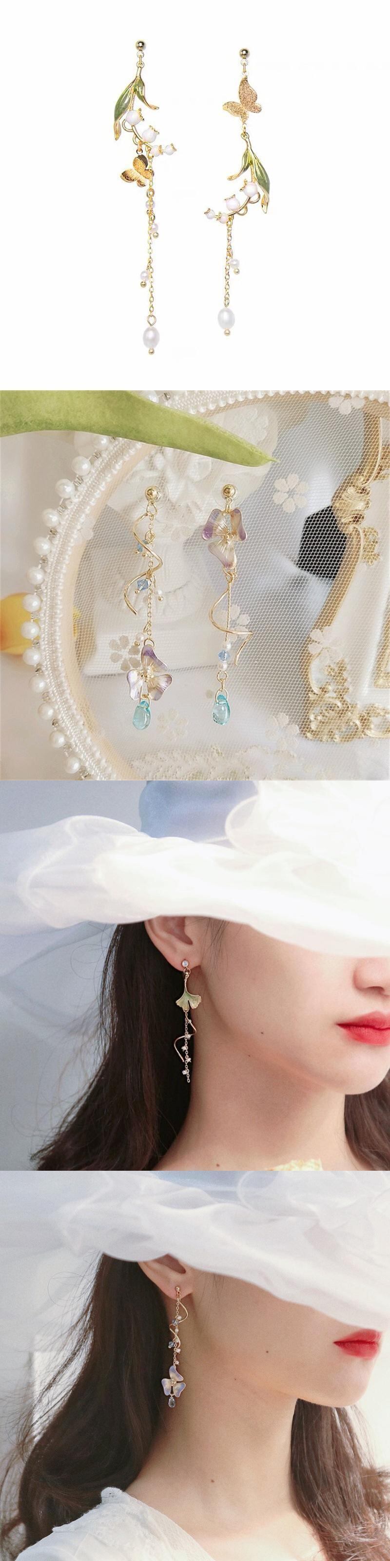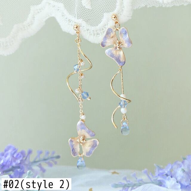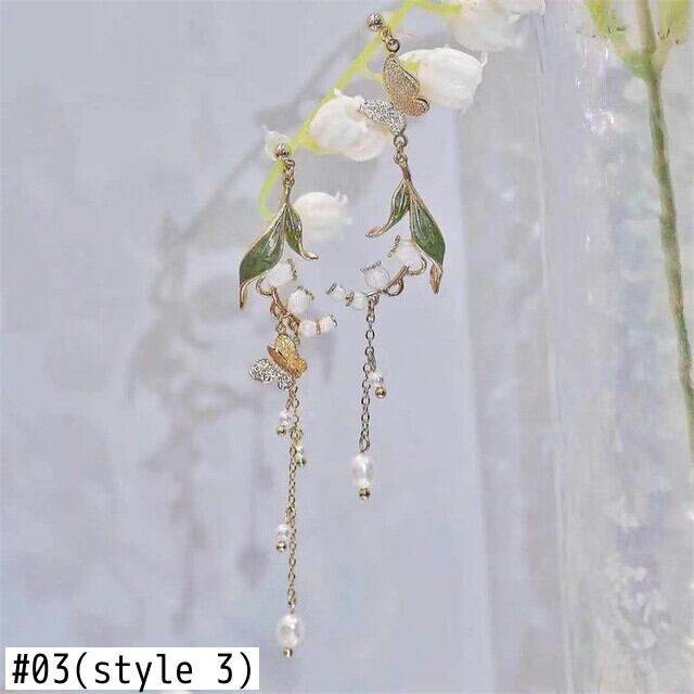 送料無料 非対称テルフラワーキャットアニマルイヤリング女性バタフライイミテーションパールイヤリングパーティージュエリーギフト 真珠 指輪 フラワーデザイン アクセサリー AE1777722341165544