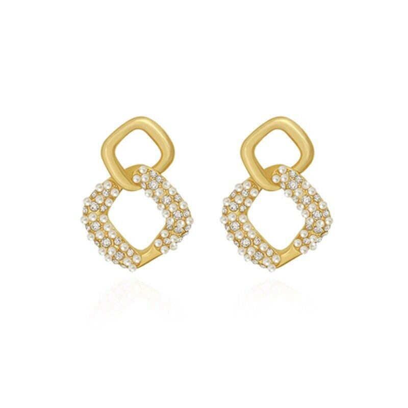 送料無料 幾何学的シミュレーションパールステートメントイヤリング女性高級ウェディングイヤリング2021トレンドジュエリーパーティーギフト 真珠 指輪 アクセサリー AE1777718855719750