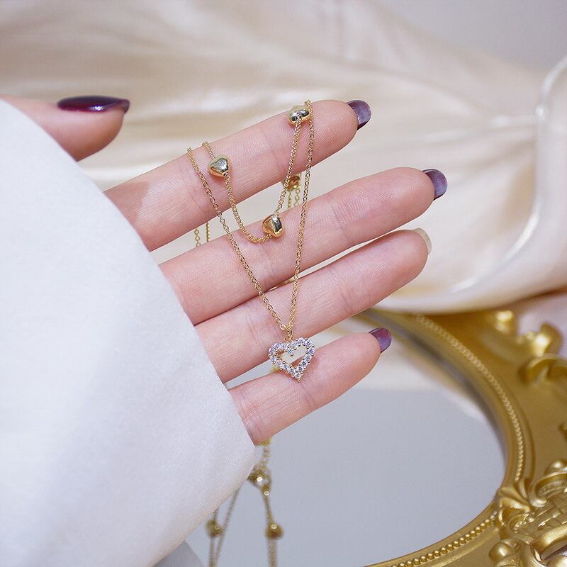 送料無料 中空スウィートラブハートチョーカーネックレスブリンブリンAAAジルコン女性クラビクルチェーンネックレスステートメントジュエリーガールフレンドギフト レース 大人ガーリー キュート カジュアル アクセサリー AE1777783594278621
