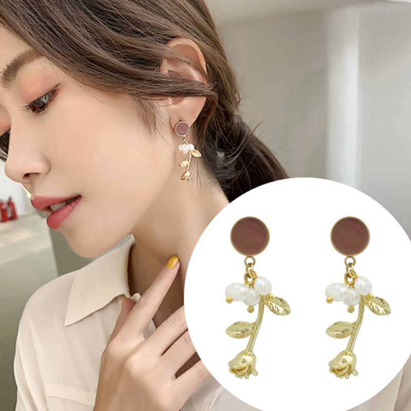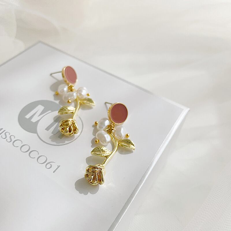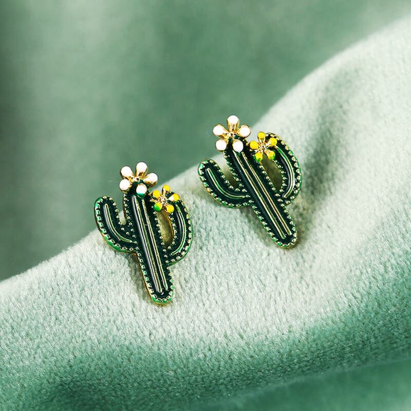 送料無料 ヴィンテージフレンチローズフラワースタッドピアス女性グリーンサボテンエナメルピアス気質ウェディングジュエリーギフト イヤリング リング 指輪 フラワーデザイン ビンテージ アクセサリー AE1777723548821073