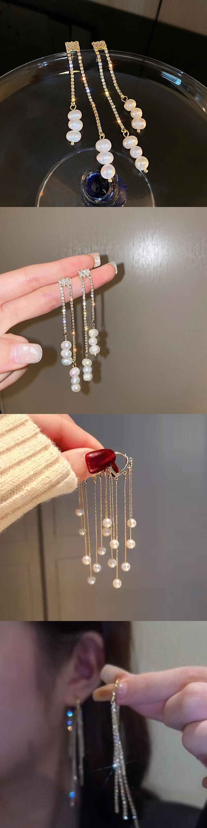 送料無料 イミテーションパールダングルピアス女性クリスタルロングテルイヤリングウェディングパーティージュエリーギフト 真珠 指輪 アクセサリー AE1777798014388131