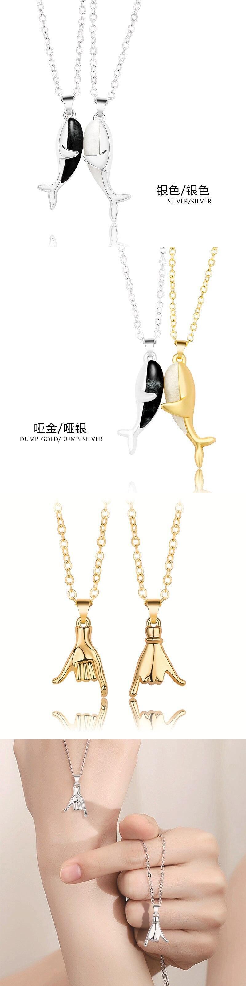 送料無料 2個マグネティックドルフィンラブハグカップルネックレス女性男性愛好家スウィートプロミスウェディングパーティージュエリーバレンタインデーギフト レース 大人ガーリー キュート カジュアル アクセサリー AE1777793223661416