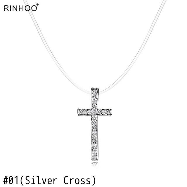 送料無料 CZクリスタルジルコンストーンシルバーカラーインビジブルチェーンネックレスクロスペンダントレディースパーティージュエリーコリアー レース 銀 アクセサリー AE1777792520747234