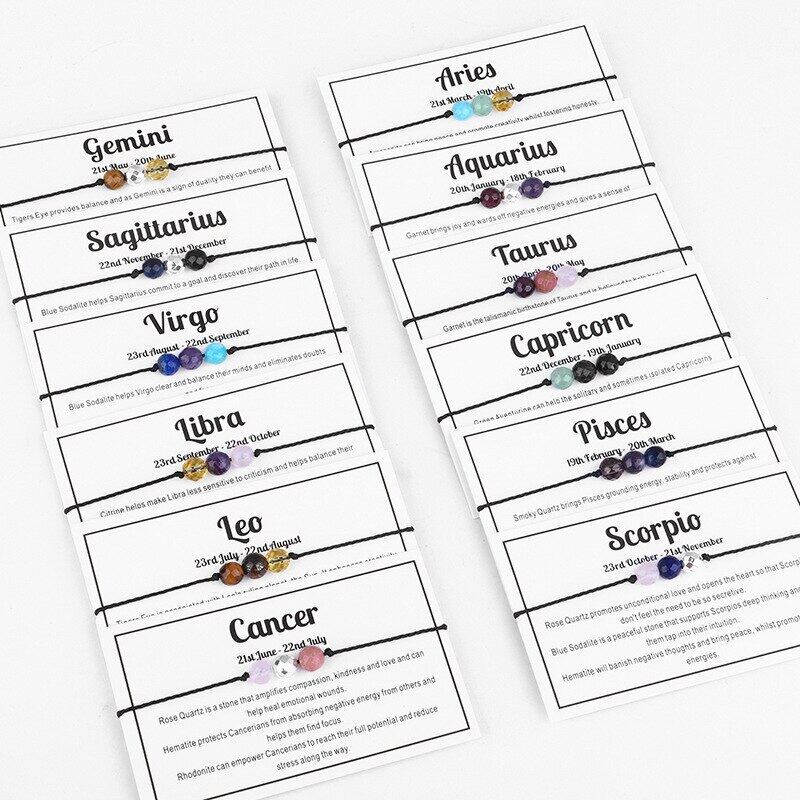 送料無料 12コンステレーションクリスタルGlビーズチャームブレスレット男性女性手作り調節可能な編組ロープブレスレットフレンドシップジュエリー アジャスタブル アクセサリー AE1777759161574420