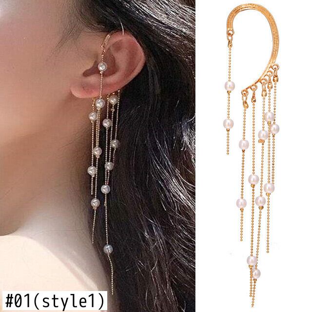 送料無料 シミュレートされたパールロングTelクリップイヤリング女性の蝶の耳のクリップピアスのない結婚式のパーティージュエリー 真珠 指輪 人工 アクセサリー AE1777730196847520