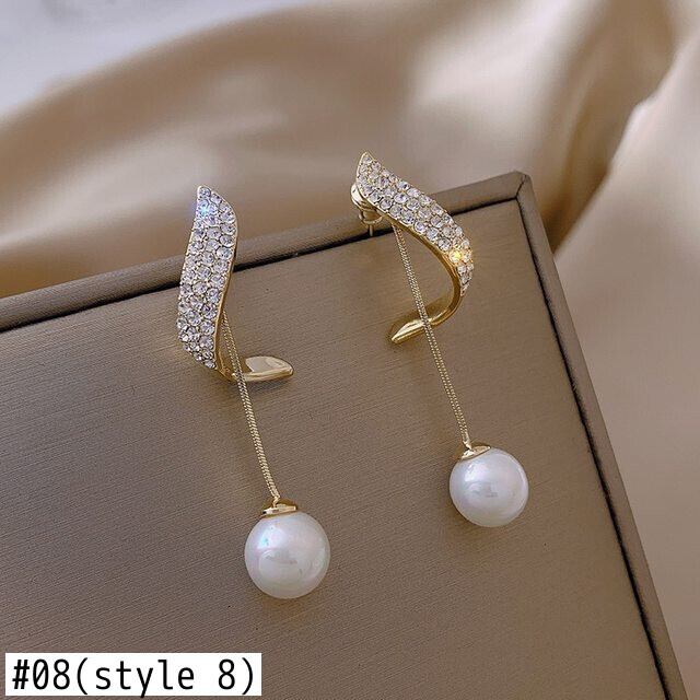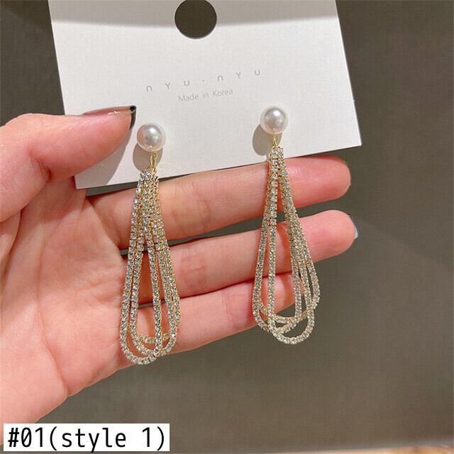 送料無料 2022パールダングルピアス女性高級クリスタルボウノットテルロングピアスジュエリーギフト リボン イヤリング 真珠 リング 指輪 アクセサリー AE1777796149954171