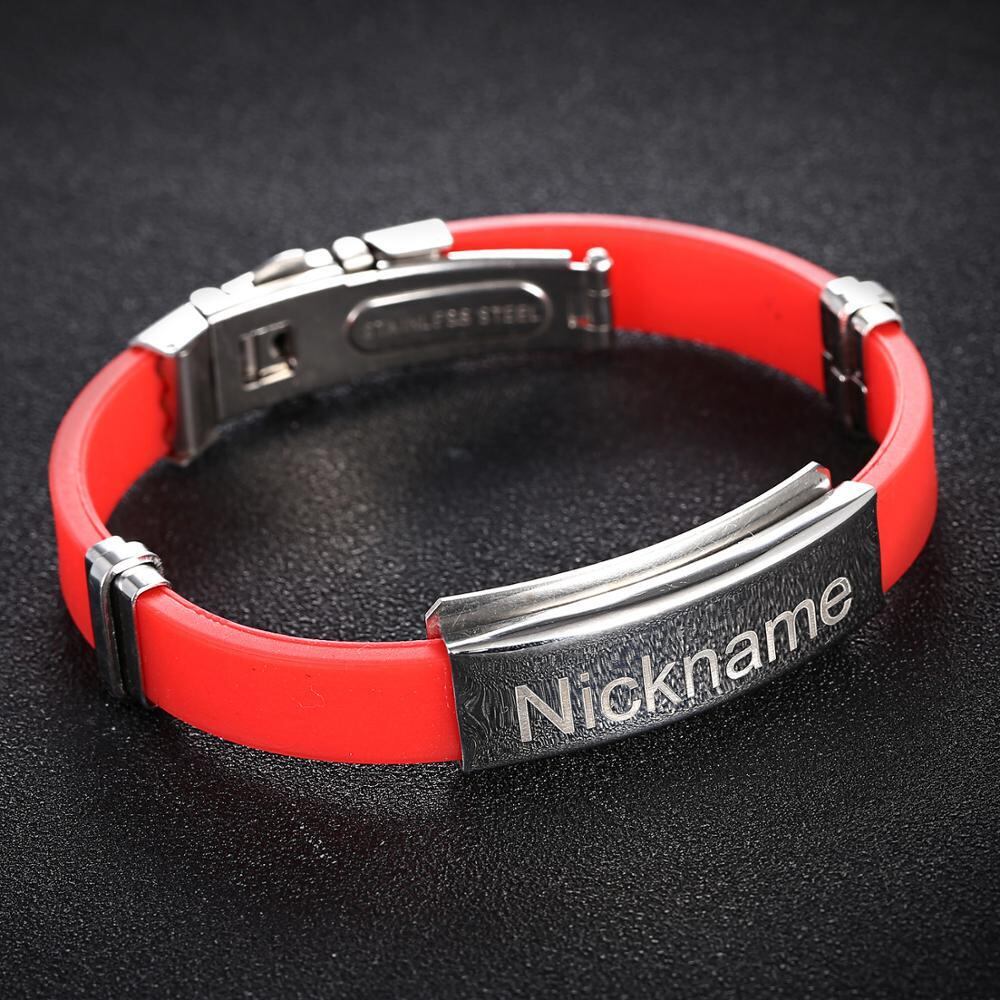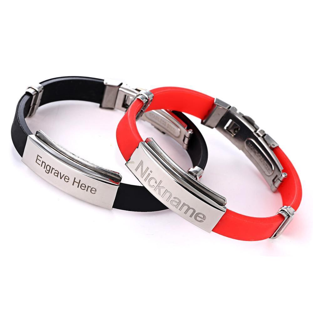 送料無料 2個のステンレス鋼カスタムカップルブレスレットシリコンメディカルアラート彫刻IDブレスレットブラックレッドシリコンリストバンドバングル アクセサリー AE1777769066953323