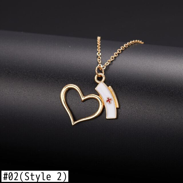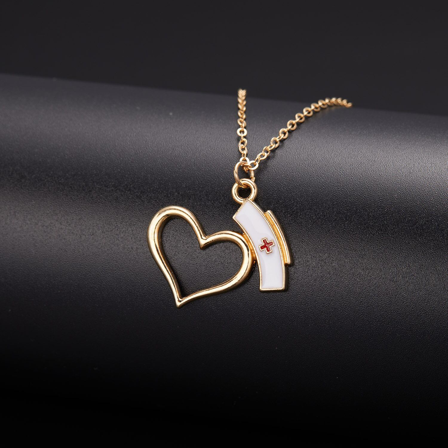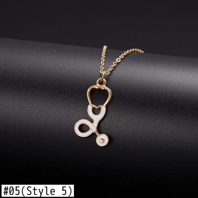 送料無料 トレンディな合金エナメルドクターナースネックレスミニマリスト医療聴診器シリンジハートペンダントネックレスパーティージュエリーギフト レース アクセサリー AE1777758803373340