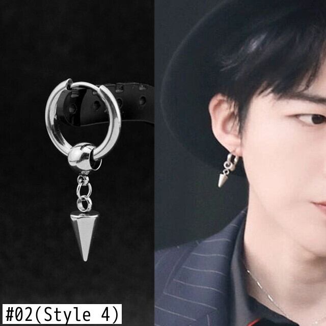 送料無料 メンズパンクイヤリングKPOPDNAステンレススチールスタッドピアスライトニングロックチェーンペンダントロックガイヒップホップユニセックスイヤークリップ 指輪 アクセサリー AE1777757885654350