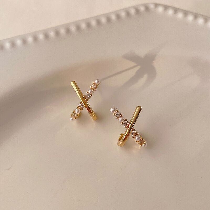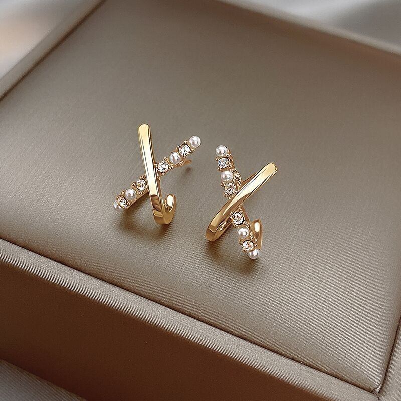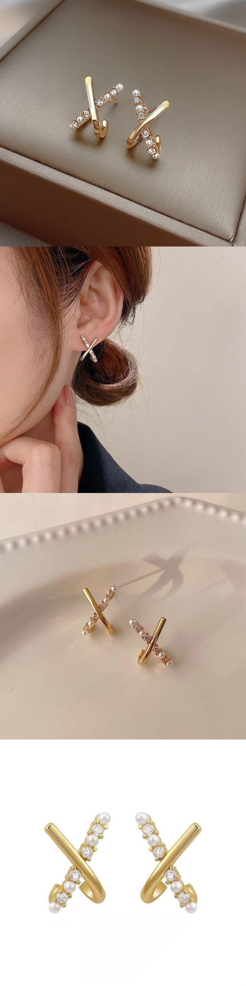 送料無料 光沢のあるクリスタルパールスタッドピアス女性絶妙な幾何学的なゴールドメタル小さなイヤリング女の子パーティーウェディングジュエリー 真珠 指輪 アクセサリー AE177771538720808