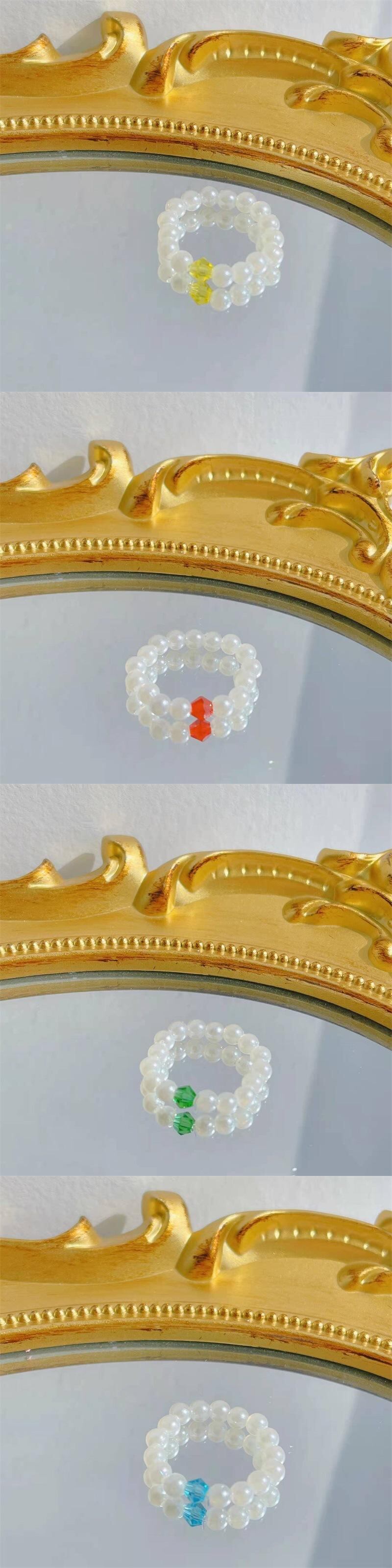 送料無料 Kpopかわいいマルチビーズパールカラフルなクリスタルビーズリングレディースガールズ手作り弾性ロープ幾何学的なラウンドミニマリストリング エラスティック 伸縮 大人ガーリー スウィート キュート カジュアル 指輪 真珠 アクセサリー AE1777761268654392