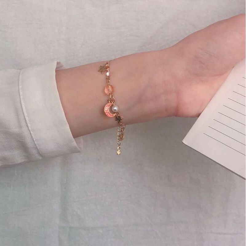 送料無料 かわいいスタームーンブレスレットガールトレンディな光沢のあるクリスタルパールチャームブレスレット女性Pulserasジュエリーパーティーギフト 大人ガーリー スウィート キュート カジュアル 真珠 アクセサリー AE1777713585274014