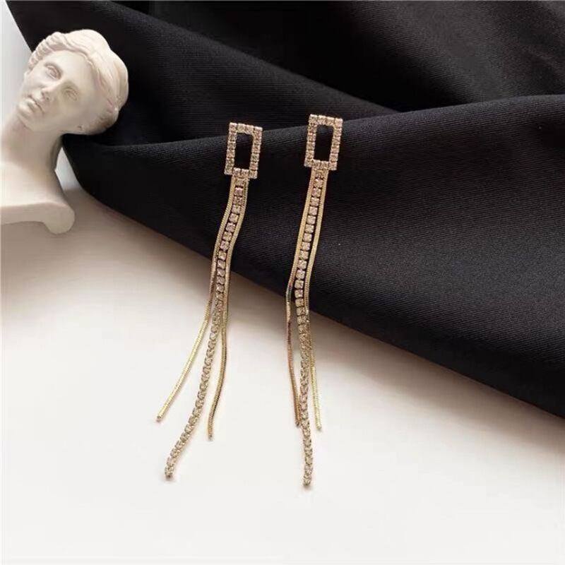 送料無料 ヴィンテージゴールド幾何学ロングテルピアス女性高級ラインストーンクリスタルダングルピアス花嫁パーティーウェディングジュエリー イヤリング リング 指輪 ビンテージ アクセサリー AE1777791023081495