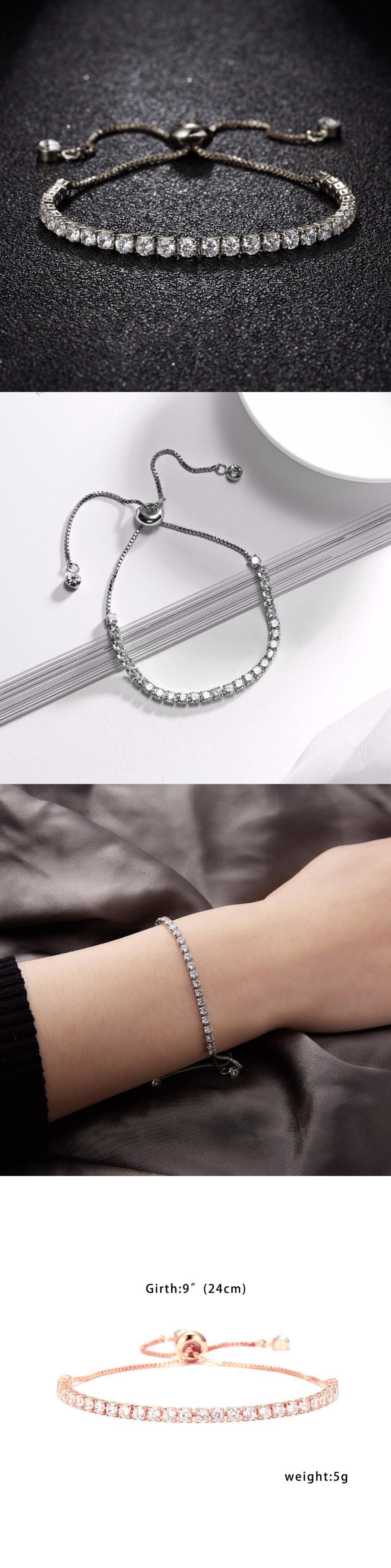 送料無料 ラグジュアリーキュービックジルコニアテニスブレスレットリンクチェーンクリスタルウェディングブレスレットレディースローズゴールドチャームブレスレットギフト 風信子石 アクセサリー AE1777743916749310