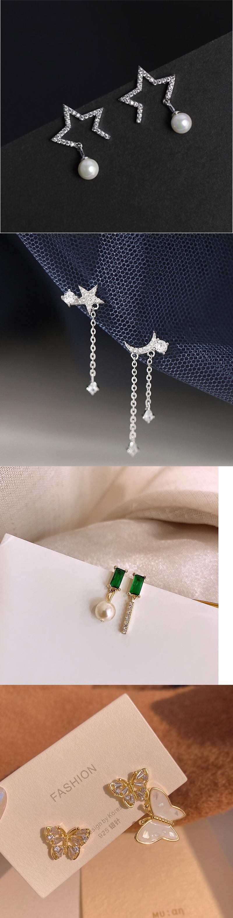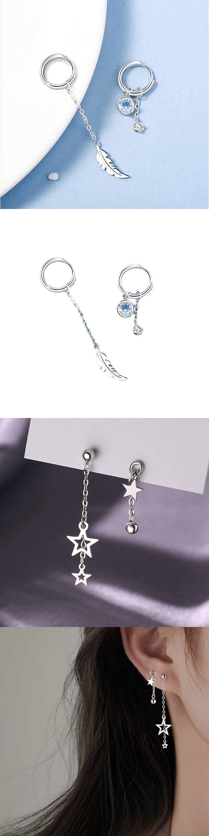 送料無料 クリスタルテルフェザーダングルピアス女性の女の子かわいいスタームーンハート非対称イヤリングパーティージュエリー 大人ガーリー スウィート キュート カジュアル 指輪 アクセサリー AE1777738476497534