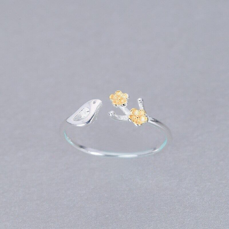 送料無料 トレンディなバードプラムブロッサムオープンリング女性調節可能な結婚披露宴婚約指輪ジュエリーガールギフト アジャスタブル アクセサリー AE1777734417763963