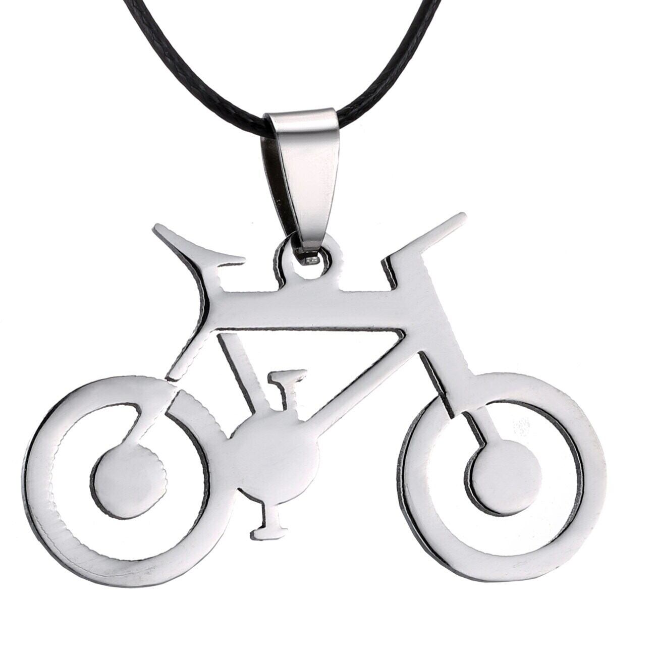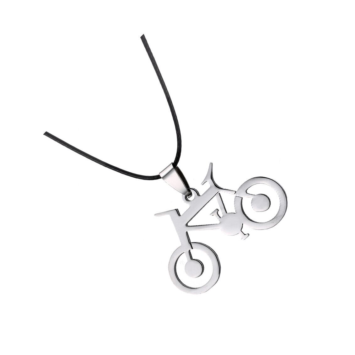 送料無料 ステンレス鋼ネックレス女性男性クリック自転車シルバーカラーペンダントネックレスレザーチェーンチョーカーパーティージュエリー レース 銀 アクセサリー AE1777776776172740