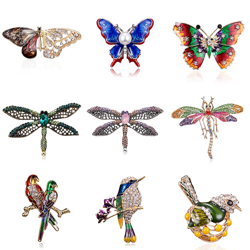 送料無料 クリスタルヴィンテージバタフライトンボブローチ女性大型鳥昆虫ブローチピンドレスコートアクセサリーかわいいジュエリー 大人ガーリー スウィート キュート カジュアル ビンテージ アクセサリー AE1777790377471076