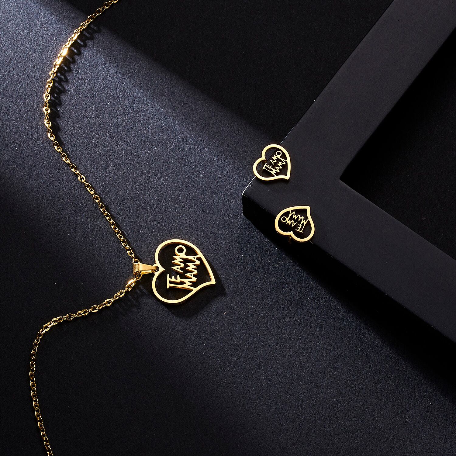 送料無料 母の日TEAMOMAMAレターハートペンダントネックレス女性パーソナリティママネームプレートクラビクルチェーンチョーカージュエリーギフト レース アクセサリー AE1777722593653035