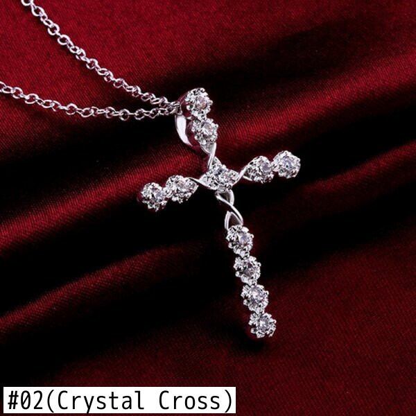 送料無料 クリックシンプルシルバーカラークロスネックレス女性男性絶妙なクリスタルイエスクロスペンダントネックレスジュエリー レース 銀 アクセサリー AE1777738655384188
