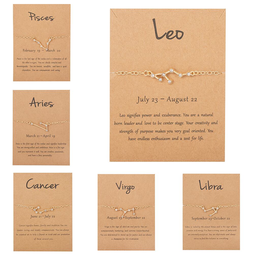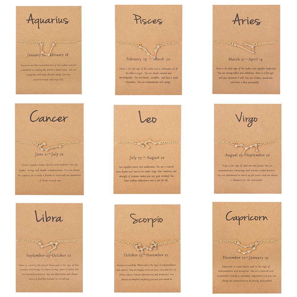 送料無料 段ボールスター星座12星座ブレスレットシャイニークリスタルゴールドチェーンチャームブレスレット女性の誕生日ジュエリーギフト アクセサリー AE1777783930025688