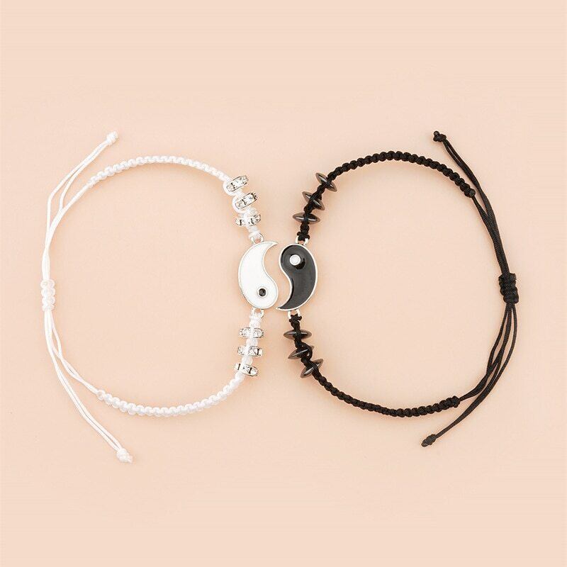 送料無料 太極拳陰陽友情カップルブレスレット調節可能なブレイドチェーンブレスレットマッチング恋人ブレスレット女性男性ラッキージュエリー アジャスタブル アクセサリー AE1777772801160669