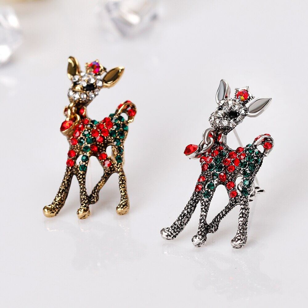 送料無料 リンフーヴィンテージゴールドシルバーカラーリースベル鹿クリスマスツリーブローチ女性キッズファミリーギフト服デコレーションジュエリー 銀 ビンテージ アクセサリー AE1777739352088174