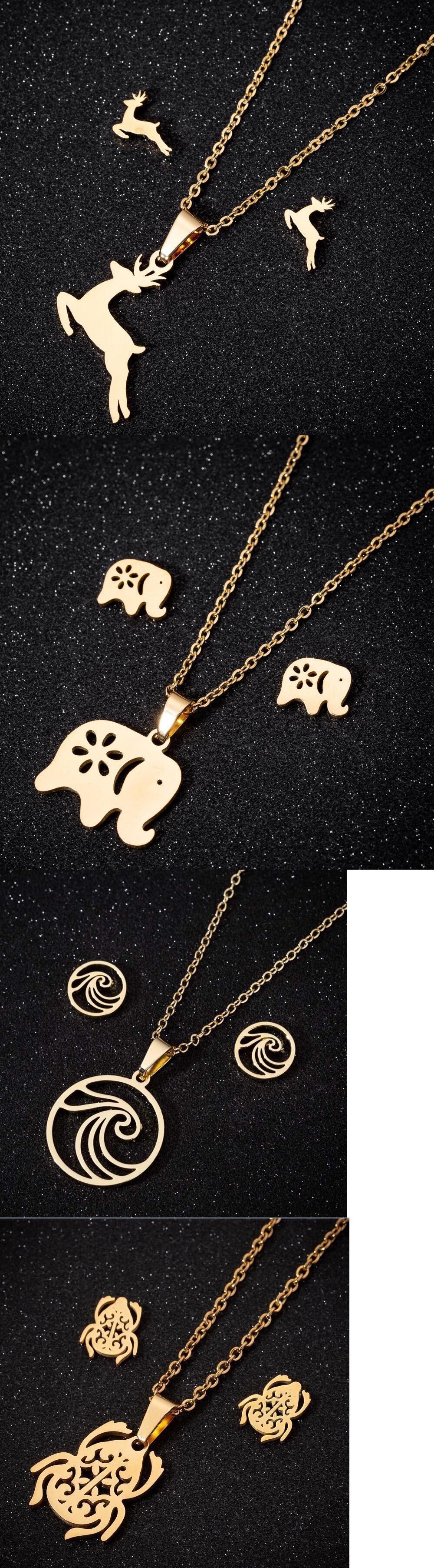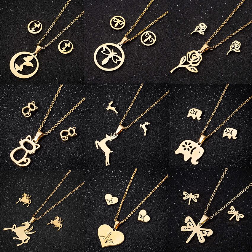 送料無料 アニマルフラワーバタフライステンレススチールペンダントネックレスは、女性のゴールドチェーンネックレスイヤリングジュエリーギフトを設定します。 レース 指輪 フラワーデザイン アクセサリー AE1777728263743171